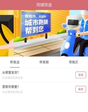 1、马上点击软件并进入主页查看其中各种服务栏目,立即点击帮我送栏