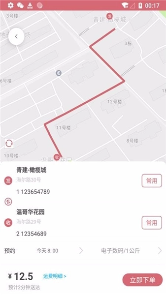 4、贴心的常用地址设置标签,在取送地址上面设置了常用标签并提供各种常用地址;