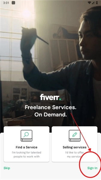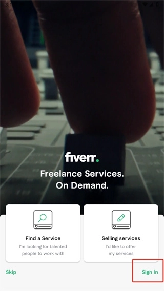 1、首先打开fiverrApp,打开之后我们点击右下角的【SignIn】;