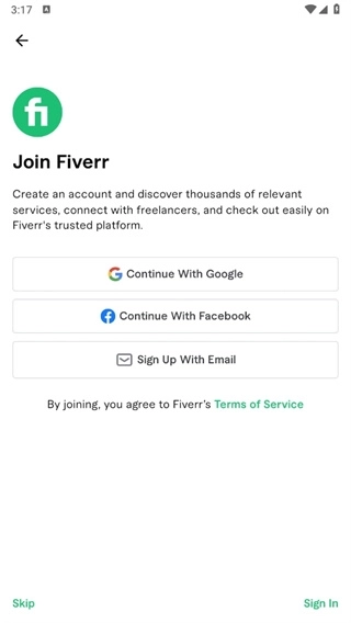 1、首次打开Fiverr,会提示您选择买家还是卖家,确认后,点击signln进入下一步;