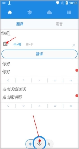输入或拍照输入中文或粤语,翻译转换发音。