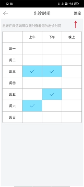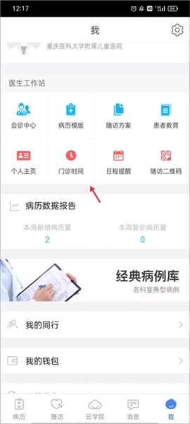 (1)点击底部菜单栏的【我】选项,然后选择页面上方的“门诊时间”入口。
