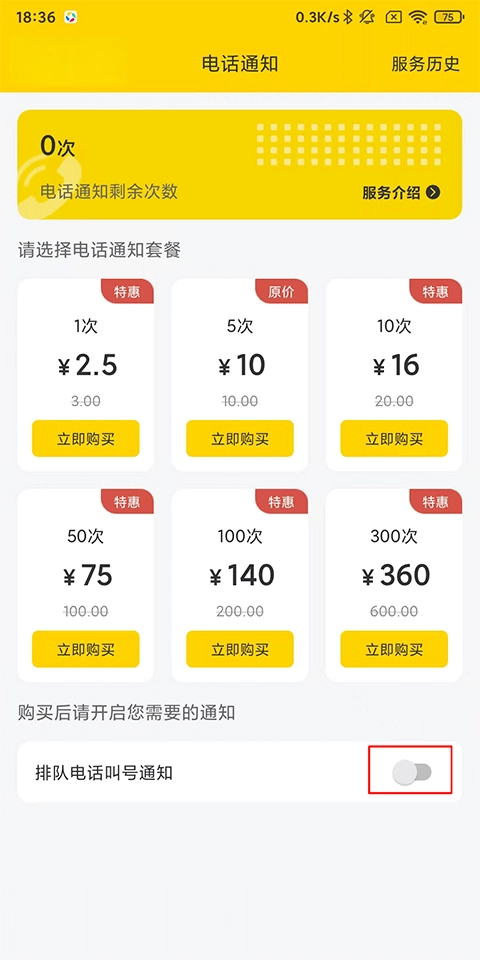 2、在下方购买电话通知套餐,之后开启排队电话叫号通知功能就可以了。
