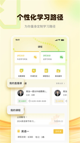 1、支持用户定制专属学习计划,可以科学规划学习路径,实现有序高效的备考。