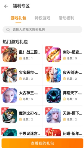 6、点击“我的”,可进入福利页面领取热门游戏礼包,助力玩家快速提升实力。