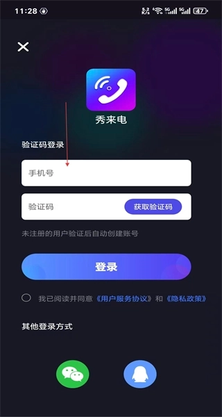 3、进入登录页面后,选择验证码登录的方式,输入手机号以获取验证码并填写,勾选相关协议后点击登录按钮,即可完成登录操作。