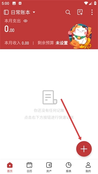 1、在【日常账本】的首页,点击右下角那个红色的加号按钮,就能进入记账分类的选择页面,进而开始记录收支情况。