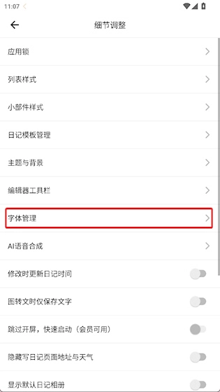 2、点击字体管理选项