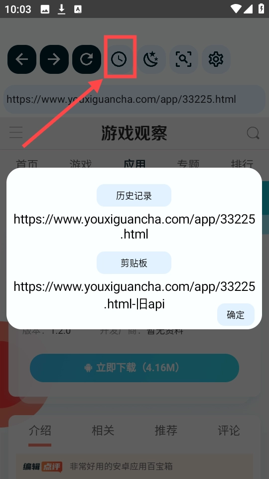 4、最后点击上方箭头所指的按钮,就能查看最新的历史搜索记录了。