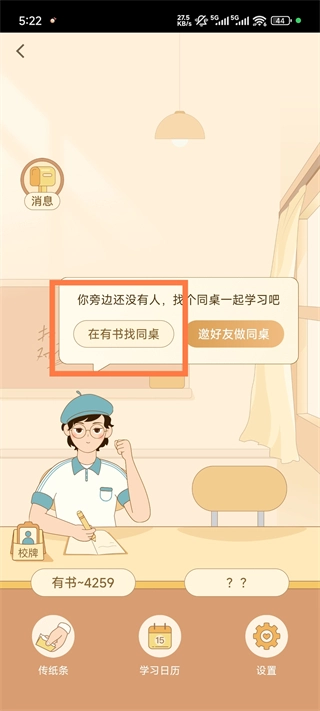 3、页面点击“有书在找同桌”或“邀好友做同桌”。