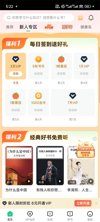《有书共读》这款有声小说推荐给用户们,涵盖商业管理、语言学习等七大领域,形成阶梯式课程结构,这款还支持手机、平板、电脑端的无缝衔接学习,你的所有记录都会被保存,用户可在不同设备间同步阅读进度与书签信息。