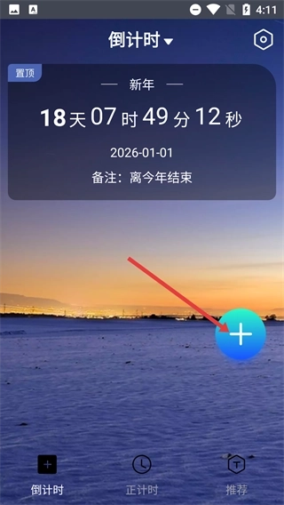 1、点击倒计时页面右下角的“+”按钮,即可弹出倒计时的创建选项菜单。