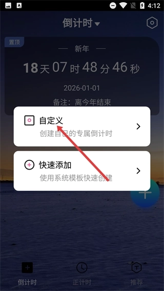 2、在创建选项中点击“自定义”,进入新倒计时的内容编辑页面。