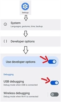 1、首先开启【开发者权限】,接着启用【开发者选项】,然后打开【USB调试】。