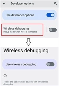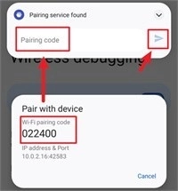 6、在【无线调试】功能里,点击【使用配对码配对设备】这个选项。