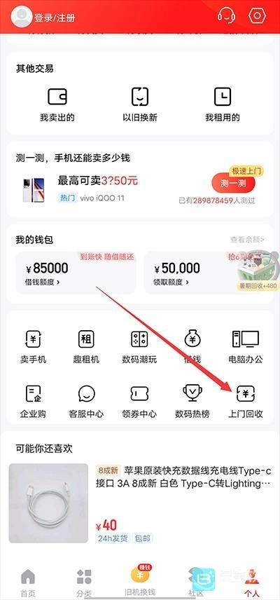 2、接着点击“上门回收”选项。