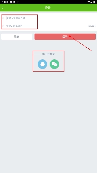 3、在登录界面中,用户既可以填写【请输入您的用户名】和【请输入您的密码】后点击【登录】按钮,也能够借助第三方平台进行快捷登录。
