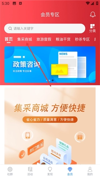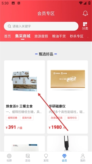 2、在会员专区点击【集采商城】标签,切换至集采商品列表页面,即可浏览专属采购商品。