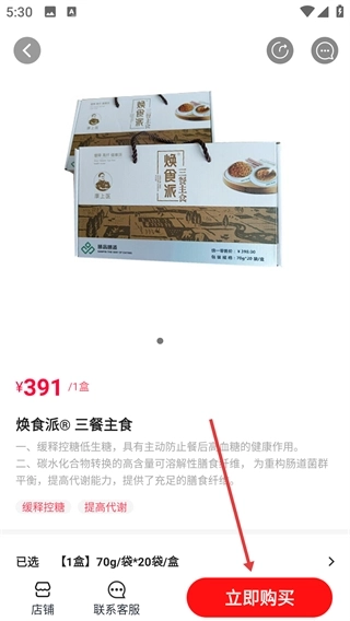 3、在集采商城里挑选目标商品(例如【焕食派®三餐主食】),点击进入该商品的详情页查看相关信息。