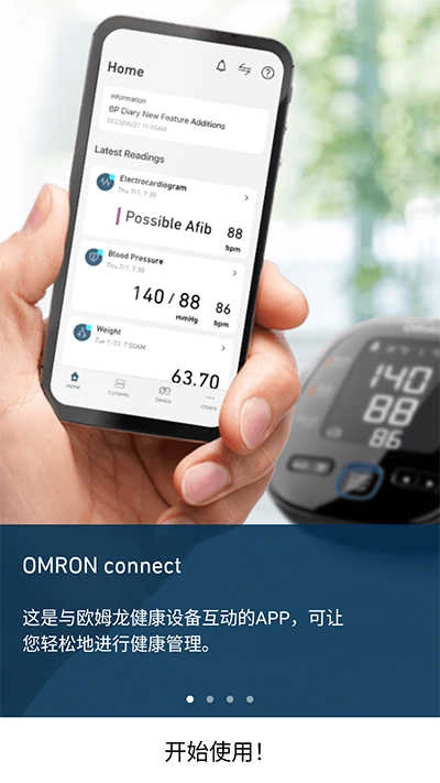 欧姆龙笔记仪表板通过内容精辟的清晰图像为您展示测量结果和历史,帮助您了解自身的健康状况。可借助这款应用确定血压、脉搏、体重、身体脂肪率、肌肉率、身体年龄、内脏脂肪指数、BMI、基础代谢等值。