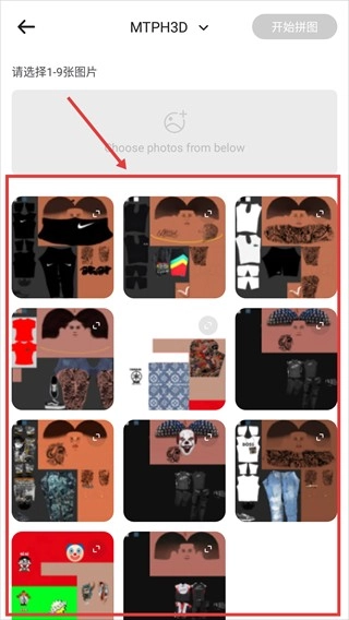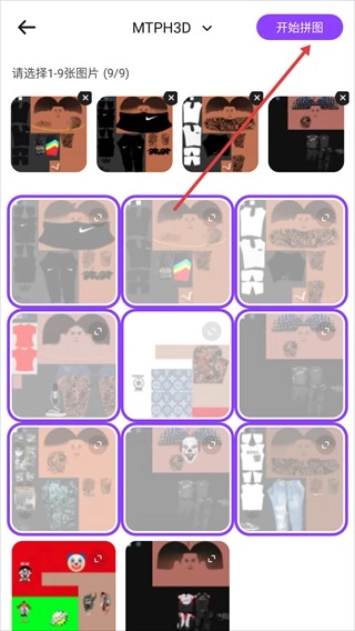 3、挑选好图片后,点击页面右上角的【开始拼图】按钮,系统便会自动生成拼接完成的图片效果。