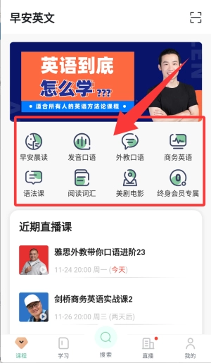 3、中外教直播课程:每周都会更新教学内容,助力学员攻克听、说、读、写各方面的短板。