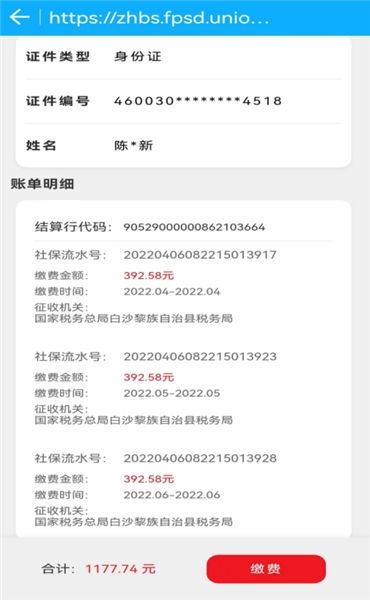 随后系统会自动关联个人社保账户信息,用户仅需点击【缴费】按钮即可完成操作。