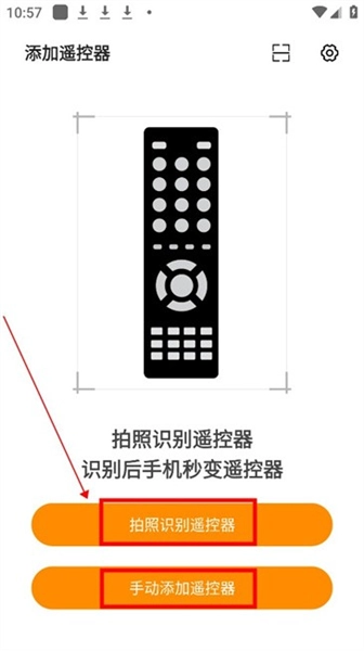 进入软件后,需要选择【拍照识别遥控器】或者【手动添加遥控】这两个选项。