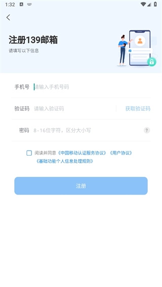 首先启动139邮箱应用程序,启动完成后会进入登录界面,在该界面中点击【注册账号】按钮即可。