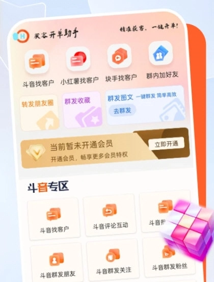 获客开单助手是一款十分实用的获客工具,借助它,用户能够在抖音、小红书等多个渠道挖掘潜在客户资源,轻松拓展客户群体。软件支持关键词评论筛选功能,帮助用户快速锁定目标客户并建立信任关系,进而便捷地实现成交转化,提升销售效率。此外,平台还提供在线智能搜索客户信息的服务,助力用户开展精准营销,让获客过程更加简单高效。用户还可以通过软件对抖音内容进行实时评论,增加曝光度,从而提高收益。有需要的朋友不妨体验一下这款工具!