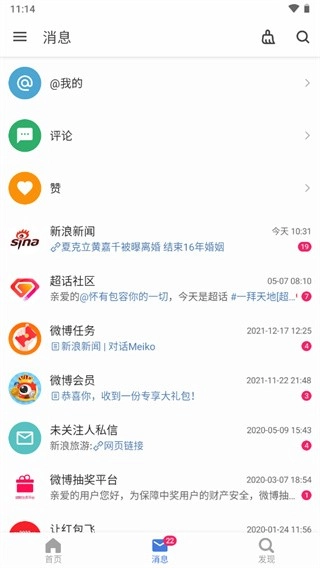 在发现页面,用户可以浏览到各类别的微博内容,包括热门话题、同城动态、各类榜单、抗疫相关信息、明星动态以及社会新闻等。