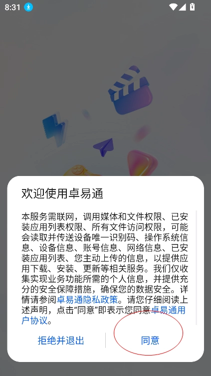 安装卓易通,点击同意权限进入