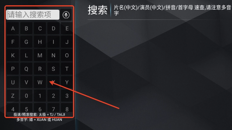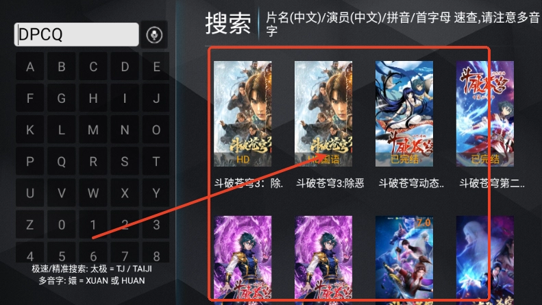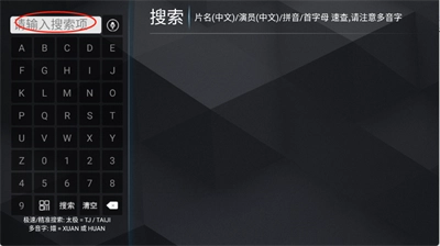 进入后输入想要搜索的影视名称,比如要找“精品”相关的,输入“JPXZ”即可,无需完整拼写所有字母,只需输入每个字的首字母。