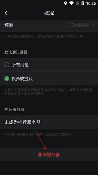 下滑至页面底部,选择“删除服务器”即可。