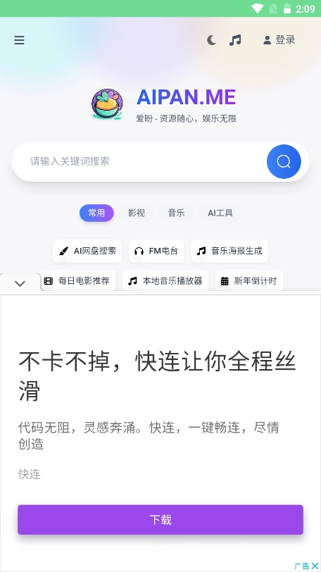 爱盼是一款功能强大的网盘资源搜索工具,多种搜索引擎,能助力用户更高效地查找资源。各类资源都可在此轻松获取,无论是影视、音乐还是软件等资源,都能精准推荐给你。你可随时在线搜索,它能极速完成查找,并实现资源的高速解析与获取。