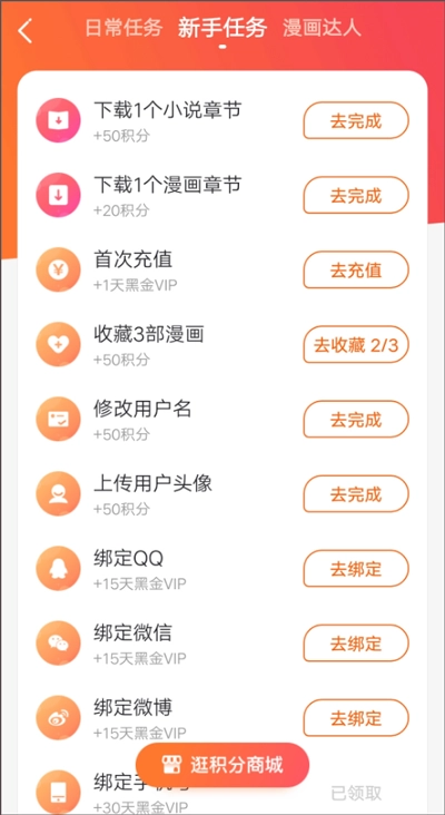 做新手任务领取积分或铂金VIP