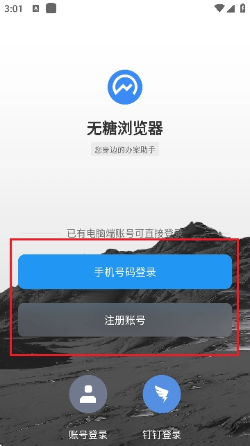 打开软件后,首先呈现的是登录界面,该界面支持两种登录方式,分别是使用手机号进行登录以及借助钉钉账号完成登录。