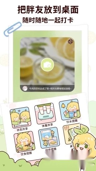 【胖友圈】胖友们的专属秘密基地来啦!在这里,你能邀请胖友伙伴一同打卡互动,分享记录轻断食的每日日常,还能及时提醒胖友当前的体重、饮水和断食进度哦。现在柠檬专属贴贴功能全新上线,把胖友们的温馨提醒贴在桌面上,就能时刻监督记录,随时随地分享新状态啦!