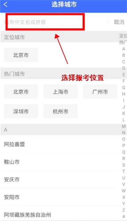 用户进入软件后需要根据报考的驾校位置,选择地址。
