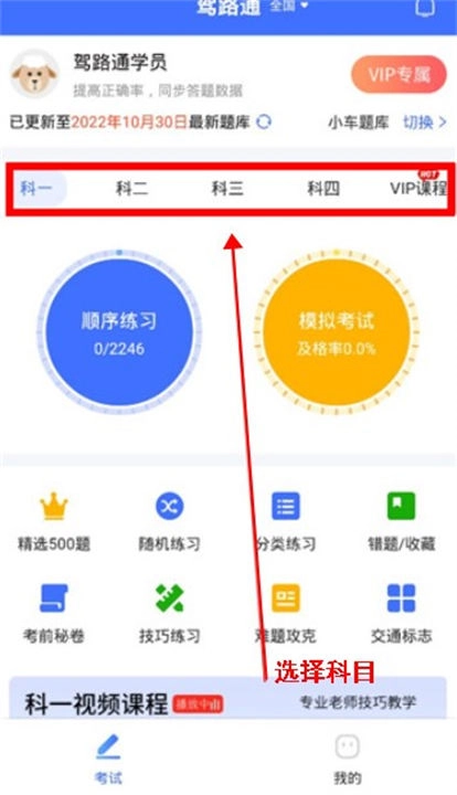 然后回到首页后,根据用户目前的考驾照进度选择相应的科目。
