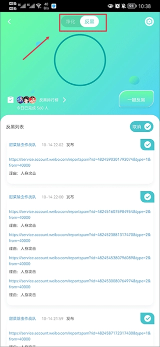 打开星芒,在星圈界面中点击净化反黑