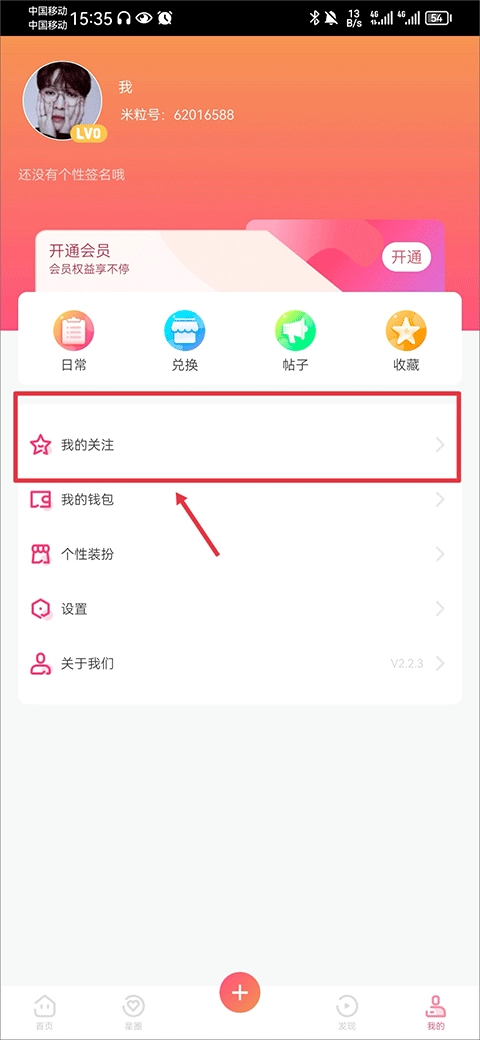 在我的界面中点击我的关注
