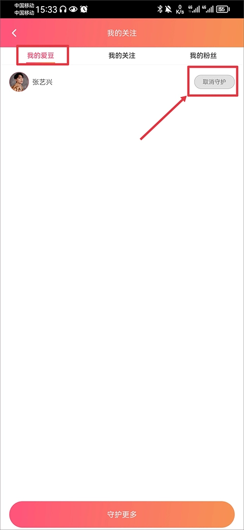 接着在我的爱豆中点击爱豆名字右边的取消守护即可