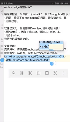 在文档里复制命令,然后粘贴到Mobox Edge模拟器设置里的Terminal终端中运行。