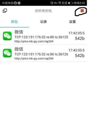 在进行抓包操作时,你能够随时点击右上角的红色方块以终止抓包进程。