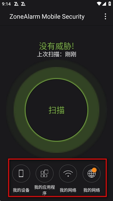 3、扫描完成后,您可以直观查看扫描结果,并通过底部导航栏查看设备、应用程序及网络数据的异常状况。