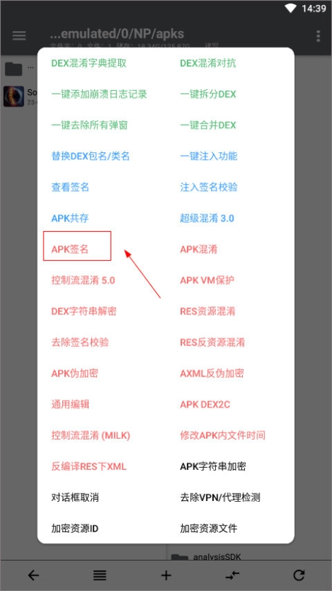 找到APK签名功能;
