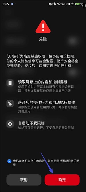 点击无障碍权限右侧的授权按钮,就能进入设置的无障碍界面完成授权操作。