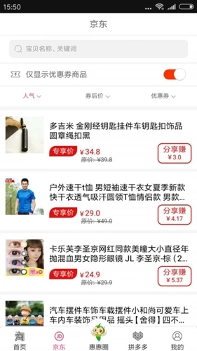 惠得支持分类查找,家居、鞋包、服饰百余款宝贝随你挑。