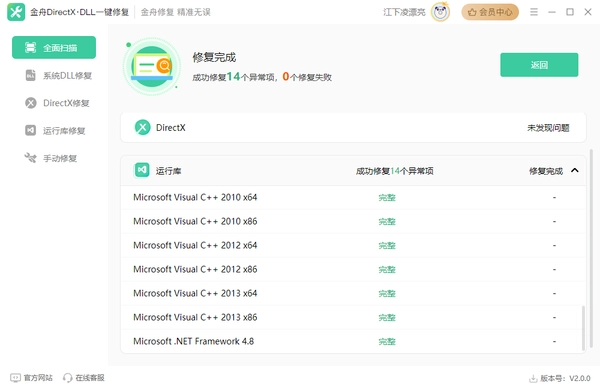 金舟DirectXDLL软件功能强大,完美适配兼容,一键修复超级好用。